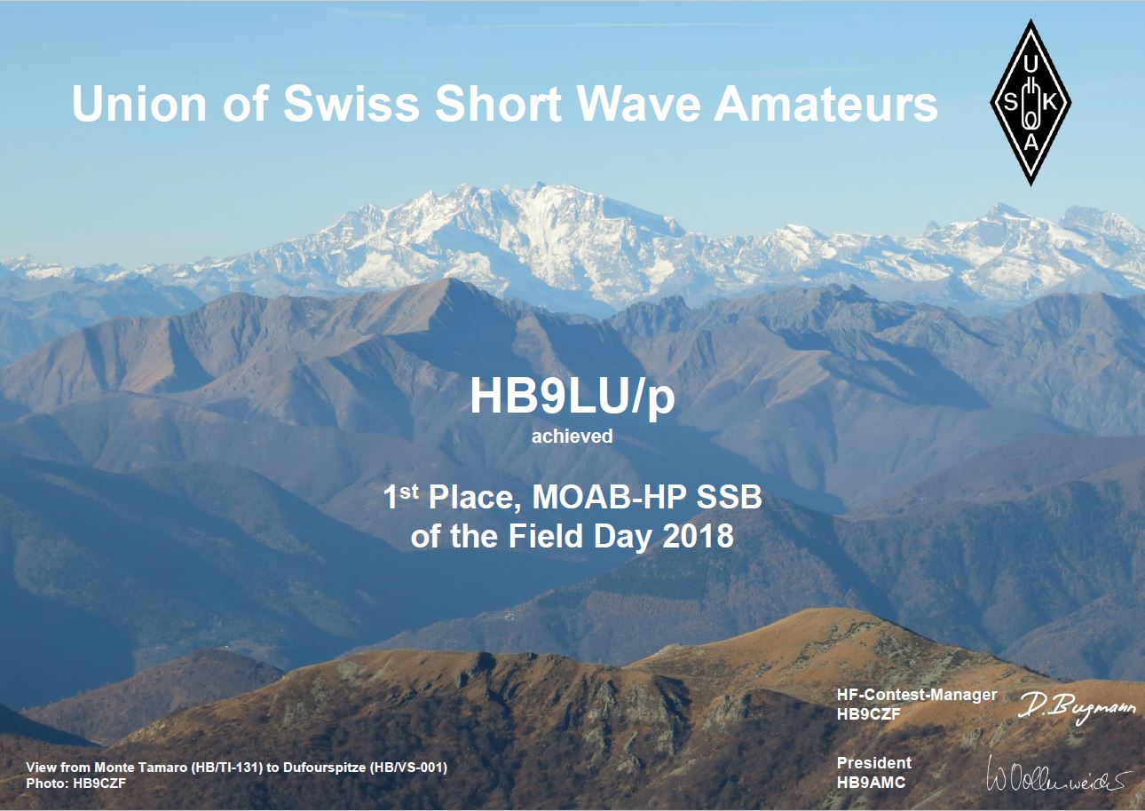 HB9LU hat in seiner Kategorie MOAB-HP den 1. Platz erreicht!!!