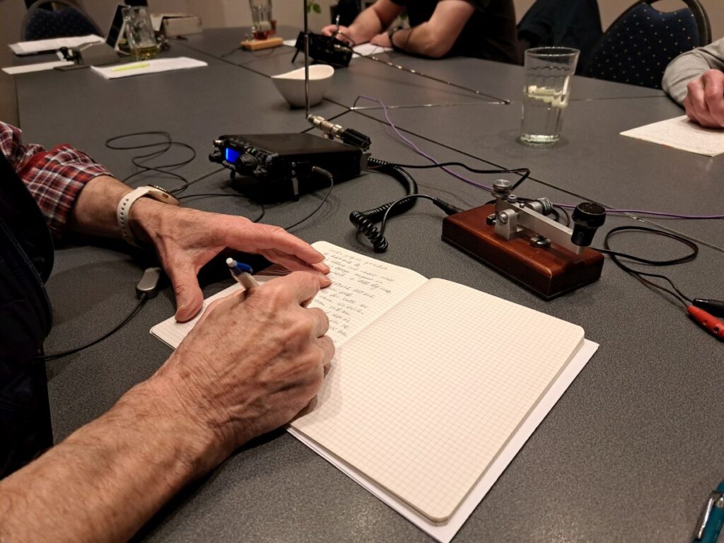 Das ist der Sinn, dass ich alle Übungen von Hand taste. Um das ganze etwas aufzulockern, machen wir verschiedene CW-Spiele, so zum Beispiel, dass ich ein Wort, oder Name taste, und derjenige der es zuerst dekodiert hat, darf das Wort laut aussprechen.