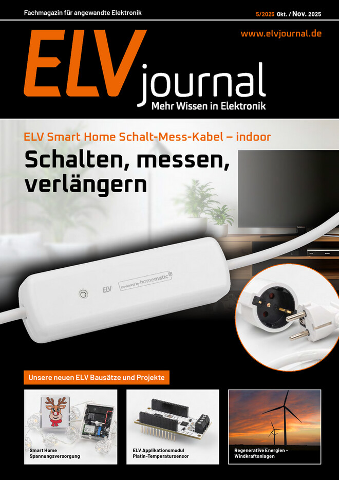 Das ELVjournal 5/2025 präsentiert sich als unverzichtbare Lektüre für Technikenthusiasten und Macher, die sich für angewandte Elektronik, Smart-Home-Innovationen und regenerative Energien interessieren. In dieser Ausgabe erwarten Sie faszinierende Artikel über Windkraftanlagen und effiziente Heizungssteuerung mit Homematic IP. Entdecken Sie die neuesten ELV Bausätze und Projekte, wie das ELV Smart Home Schalt-Mess-Kabel – ein cleveres Gerät für den Innenbereich, das nicht nur schaltet und misst, sondern auch als Verlängerungsleitung dient. Zudem geht das ELVjournal online an den Start, eine Plattform, die wöchentlich aktualisierte Fachinhalte bietet und den Dialog zwischen Redaktion, Entwicklern und Lesern fördert.
