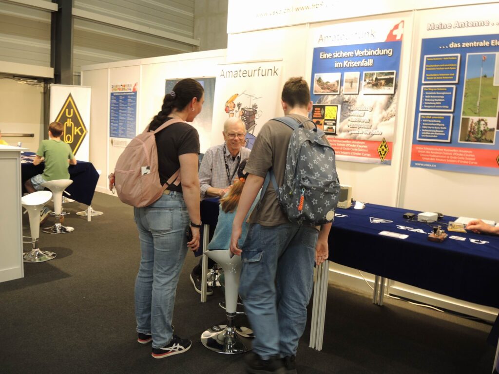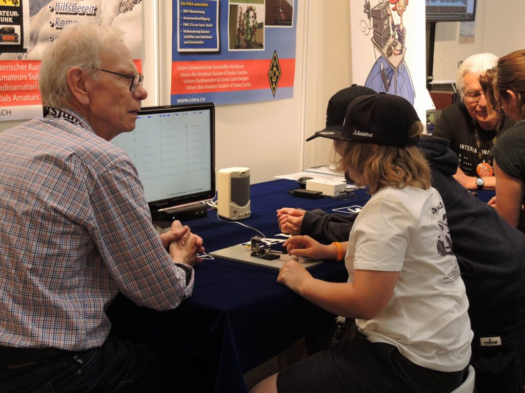 Die Besucher nahmen sich sehr viel Zeit um einen Einblick in unser Hobby zu erhalten. Die zusätzlichen Morsetasten welche jeweils an den Air & Space Days im Verkehrshaus gebaut wurden viel benutzt. So konnte von einem Tischende zum Anderen via zwei Drähte kommuniziert werden. Viele zeigten auch Interesse daran, auch eine solche Morsetaste zu bauen. Dazu muss man noch bis anfangs Oktober gedulden bis der Sonder-Event im Verkehrshaus durchgeführt wird.