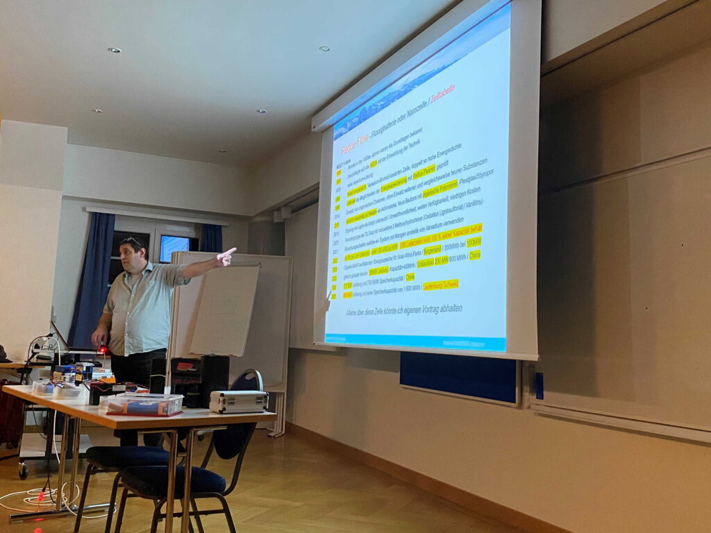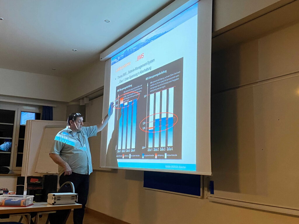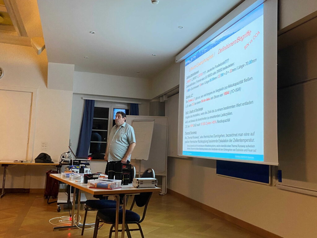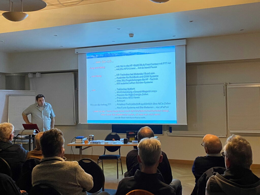 Der Referent Michi, HB9OOA, führte uns mit viel Humor und auf kurzweilige Art durch das Thema. Dabei vermittelte er nicht nur grundlegendes Wissen, sondern ging auch tief in die Akkuchemie ein. Zum Abschluss gab er uns zahlreiche Tipps und Tricks aus seinen eigenen Erfahrungen mit auf den Weg.