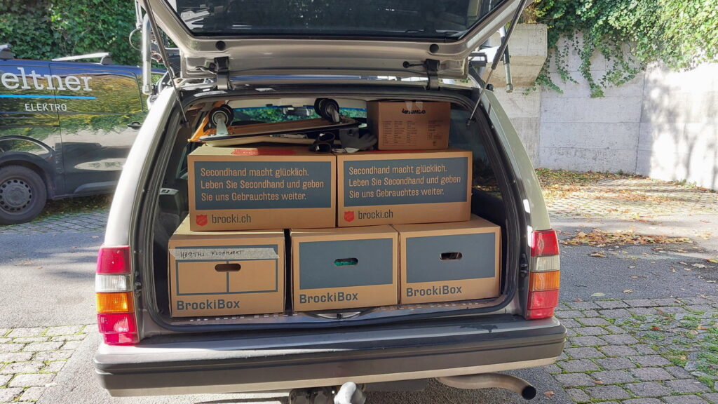 Was zunächst einfach klang, wurde für uns zu einer grossen Herausforderung, die viel Vorbereitung erforderte. Nach sorgfältigem Verpacken umfasste der Nachlass rund 20 Zügelschachteln – das maximale Volumen, das in den von HB9FLB freundlicherweise zur Verfügung gestellten Volvo Polar passte.