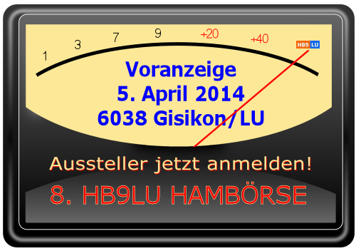 Allgemein HB9LU-Sektion Luzerner Hambörse Veranstaltungen Voranzeige: 8. Luzerner Hambörse am 5. April 2014 in Gisikon/LU 17. November 2013 HB9FMM Am Samstag 5. April 2014 von 9.00-14.00h findet die 8. Luzerner Hambörse wiederum in Gisikon/LU statt.Weiter Infos sind hier zu finden.